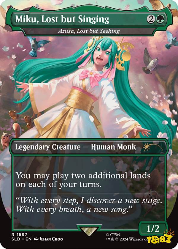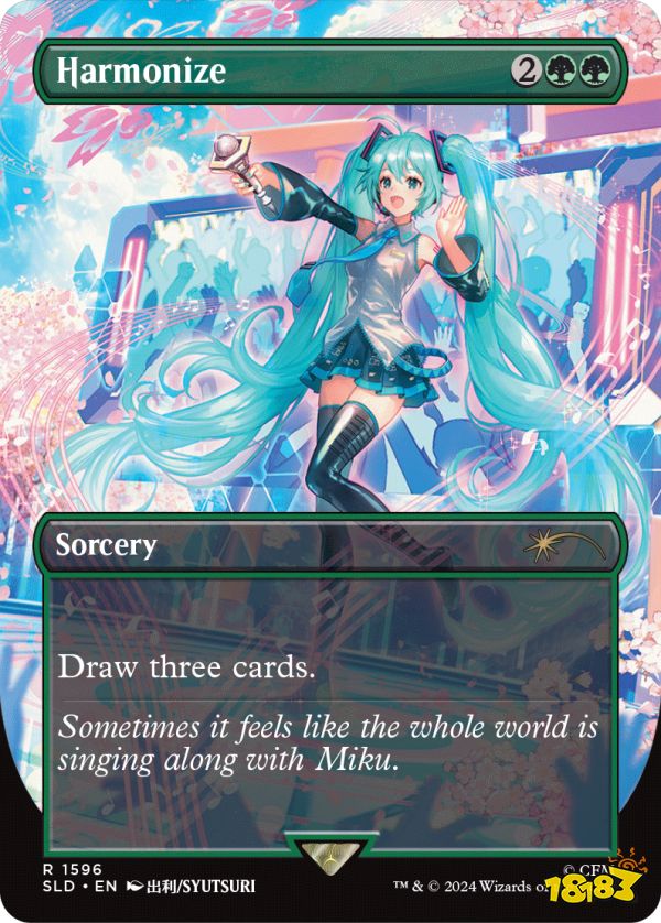 该卡组不仅将初音未来的经典形象融入卡牌设计,完美展现了初音未来与《万智牌》风格融合后的独特韵味。官方表示这些卡片的灵感来自日本春天的樱花和闪电,随着后续该卡组的正式实装,玩家们在构筑牌组、参与对战的同时,也将能享受到初音未来所带来的视听盛宴。