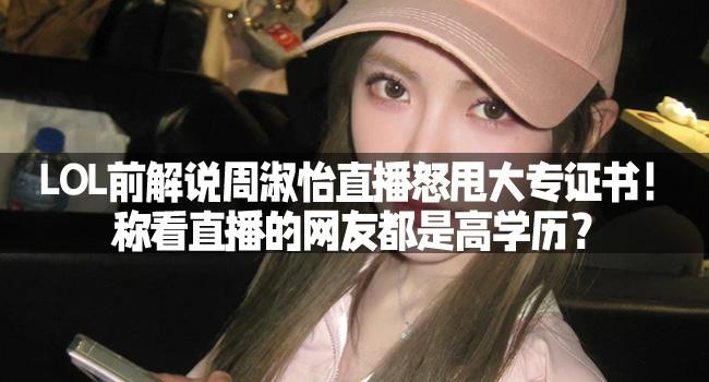 周淑怡大家肯定都非常熟悉了,周淑怡可以说是一手好牌打的稀烂,从最初的女团成员到后面LPL的官方解说再到最后的游戏主播可以说很多网友都很喜欢周淑怡,毕竟有一说一周淑怡还是长得比较好看,连和周小璐都在一起过的pg1都能看上周姐,足以证明其颜值。后面周淑怡和pg1的事件爆发,可以说周淑怡以前的努力算是白费了,从一个风评极好的主播到口碑直线下滑到现在的人见人打。不过这么多粉丝里也总有一些沸羊羊粉会继续周淑怡。大家都知道周淑怡的学历,一直都被大家议论,很多网友都说周淑怡中专太妹配rapper简直是绝配。