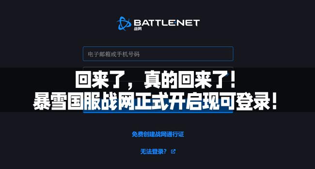 回来啦!真的回来了!在今天暴雪国服战网目前已经正式开启玩家们可以登录了!战网登录地址是:account.battlenet.com.cn。打开这个地址后,我们就可以进入到暴雪国服战网的登录界面,只要输入自己之前的国服账号或者手机就可以进行登录,再输入密码或者手机验证码就可以了。并且今天是5号距离官方预告爆料国服回归进度消息的日子6号也马上到了,之前网易官方称将在6月6日这天进行事关国服的重磅消息的宣发,大家可以期待明天有什么好消息传来。