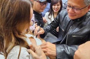 在展会现场,黄仁勋的现身立刻引发了观众们的热烈反响。大家纷纷争相拍照、请求签名。此时,一位女粉丝勇敢地走到黄仁勋面前,提出了一个特别的请求——希望他能在她胸前的衣服上和手机壳上签名。面对这个不寻常的请求,黄仁勋表现出了极高的职业素养和绅士风度。他先是询问这是否是一个合适的举动,随后在得到女粉丝的肯定回答后,他小心翼翼地完成了签名。
