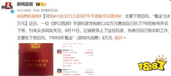 据新闻晨报报道,近日,一位《梦幻西游》手游玩家发帖称以32万元售出自己玩了7年的账号并买了房,引来众多网友关注。