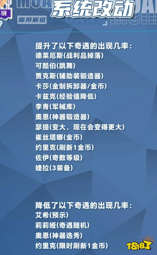 提升了获取金币、装备的奇遇概率,版本彻底狂欢起来了。