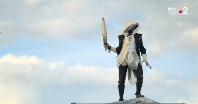 近日巴黎奥运会开幕式上,在火炬交递的过程中,一个穿着法国大革命时期的军服、带着白色斗篷,拿着火炬,蒙面在城市屋顶跑酷,是来自游戏《刺客信条·大革命》中的主角亚诺的cosplay扮演。