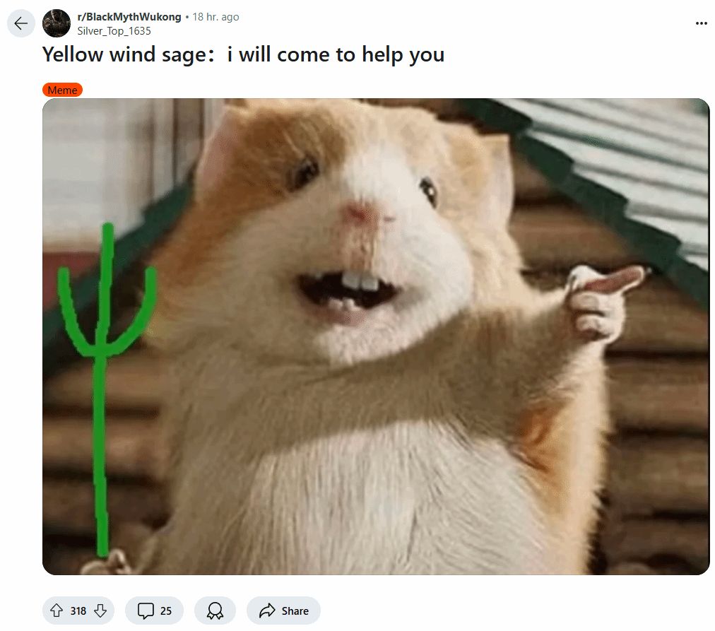 其中,“黄风大圣”的“我来助你!”梗图近日也被转发到了Reddit上,引起了海外玩家的热议。