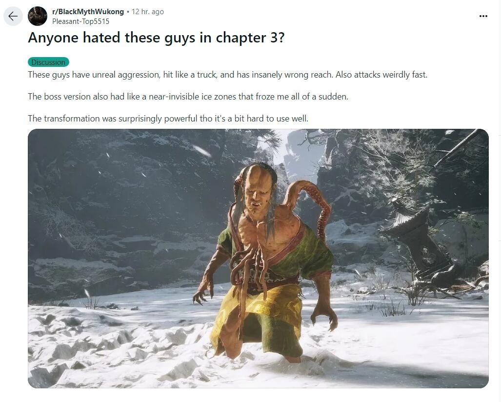 在《黑神话:悟空》的第三章节“小西天”中,玩家会遇到更加广阔的场景,同时敌人种类和数量也大幅增加。在这一章节的新敌人里,“双马尾哥”海上僧因为其高强度而让玩家感到头疼,甚至有Reddit网友专门发帖抱怨:这个敌人实在太烦人了。
