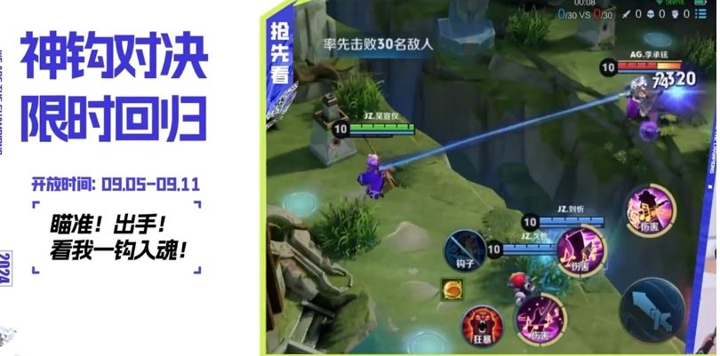 《王者荣耀》全新版本“上场,共赴荣耀!”今日上线,版本更新后 9 月 5 日-9 月 11 日,神钩对决玩法限时回归。