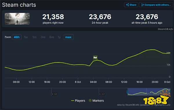 据SteamDB数据显示,《寂静岭2:重制版》在Steam平台的在线玩家峰值仅为23676人。与同为经典游戏重制的《生化危机》系列相比,这一数据显得相对黯淡。例如,《生化危机2:重制版》的在线峰值达到了74000人,《生化危机3:重制版》的玩家峰值也超过了60000人,而最新的《生化危机4:重制版》更是创下了168000人的在线峰值纪录。此外,《死亡空间:重制版》的玩家峰值也超过了30000人。
