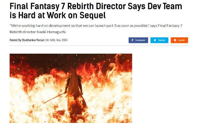 近日《最终幻想7》重制版开发总监近日在推特上发文爆料,目前团队正在开发《最终幻想7》重制版第三部:“今年只剩两个月了。过去的一年,我很高兴能够通过《最终幻想7:重生》环游世界,并与全球媒体和社区建立联系。目前,我们正在努力开发,以便尽快推出《最终幻想7》重制版第三部分。”