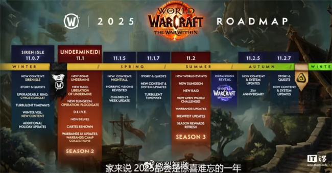 11月14日,暴雪正式公布了《魔兽世界》2025年的更新路线图。根据路线图,游戏将迎来11.0版本的多个新补丁,为玩家带来丰富的游戏体验。