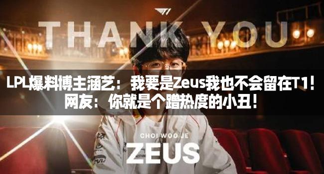 而据微博博主报道,LPL知名经纪人涵艺在微博评价了这件事,认为自己要是Zeus的话,肯定也不会留在T1,因为自己得不到尊重。“Zeus那个事情。之前不是跟大家说他在犹豫嘛,其实LPL给了很高的价格,但最后T1只开了接近800多的这个价格,然后HLE给了他1100万左右,然后他就去HLE了,如果我是Zeus的话,我肯定也不留在T1啊,我觉得得不到尊重,我两个世界冠军最后只拿800万税前一年,是你们,会怎么想?”不少网友对汉语的评价表示反驳,大量网友表示:涵艺这种小丑就别拉出来溜了!还有网友表示:LPL是什么臭鱼烂虾?天天转会来转会去,一个队伍都磨合不到第二年,捞不到冠军也正常!