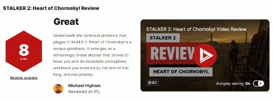 在《潜行者2:切尔诺贝利之心》面市四日之际,国际知名游戏评测媒体IGN总部揭晓了该游戏的最终评分——8分。此前,IGN因游戏首发时遭遇的技术障碍与众多漏洞,决定推迟发布全面评测。