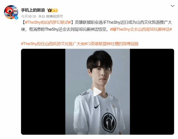 据新浪消息,英雄联盟职业选手TheShy近日成为山西文化旅游推广大使,有消息称TheShy还会去到现场玩《黑神话悟空》。