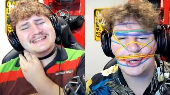 他还尝试过其他令人震惊的自我挑战速通,例如用橡皮筋缠住头部直到疼痛难忍,甚至剃掉自己的眉毛。