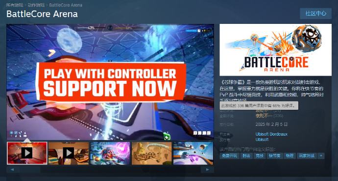 2月5日,育碧免费平台射击竞技游戏《芯球争霸》(BattleCore Arena)正式登陆Steam,不过基本无人问津,目前在线的玩家数量仅有2人,即使是去年抢先测试时的玩家在线峰值也仅有124人……