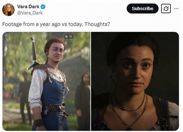 《神鬼寓言4》新实机视频公布后,女主的形象再次引发玩家讨论。知名女记者Vara Dark将其与之前预告中形象进行对比,评论区有人认为:“新实机中女主看起来顺眼些,眼睛和表情更自然。但从整体来看还是没吸引力。”“看起来还是个男人”“角色模型没有太多变化,但光影效果更好。”