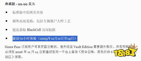 福布斯近日发布报道称,购买《使命召唤22:黑色行动7》Vault典藏版(售价99.99美元)的玩家将获得提前72小时解锁游戏的权益,即可于11月11日抢先体验。然而这一说法迅速在外网玩家社群中引发质疑潮。