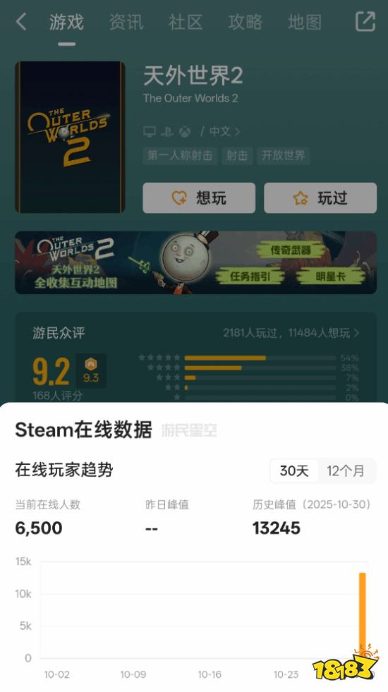 由黑曜石娱乐打造的科幻RPG《天外世界2》已于今日正式发售,但Steam平台首发日的玩家在线峰值仅为13,245人,表现逊于同厂今年二月推出的奇幻RPG《宣誓》——后者历史峰值达19,142人,两者相差近6000人。
