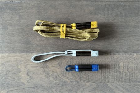 借助套装中附赠的一款转接器(售价110欧元),可将多根不同长度的数据线拼接成一根长数据线。制造商Rolling Square称,通过这种方式拼接,数据线最长可达30米。不过,每延长10米,功率损耗约为7瓦。