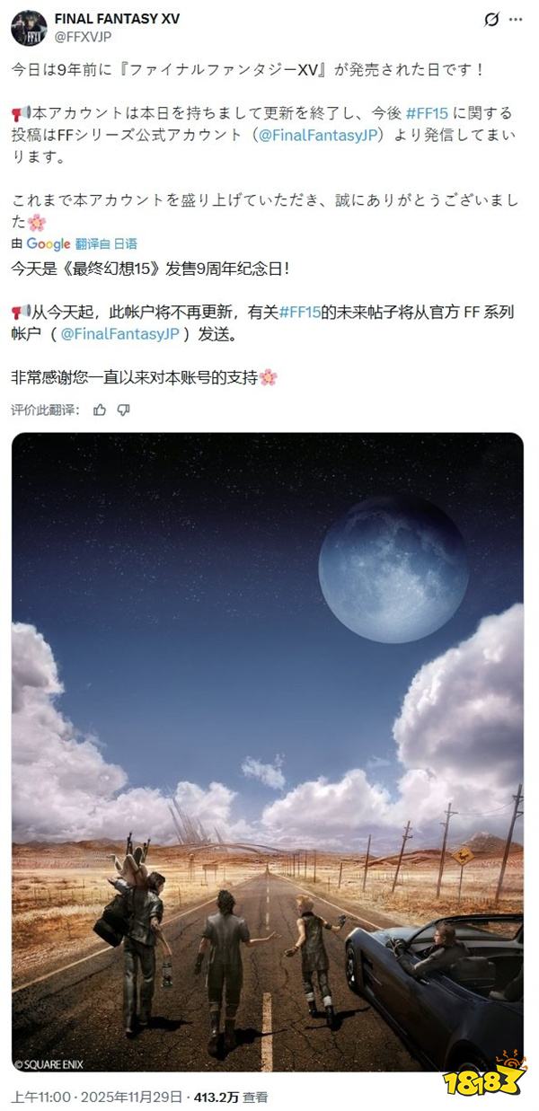 嗨各位光之战士!有个重磅消息:《最终幻想15》的官方社交账号,在刚过完九岁生日后,就要正式和大家说再见啦!账号内容之后会合并到系列主账号 @FinalFantasyJP,但游戏依然可以在各平台继续玩哦。