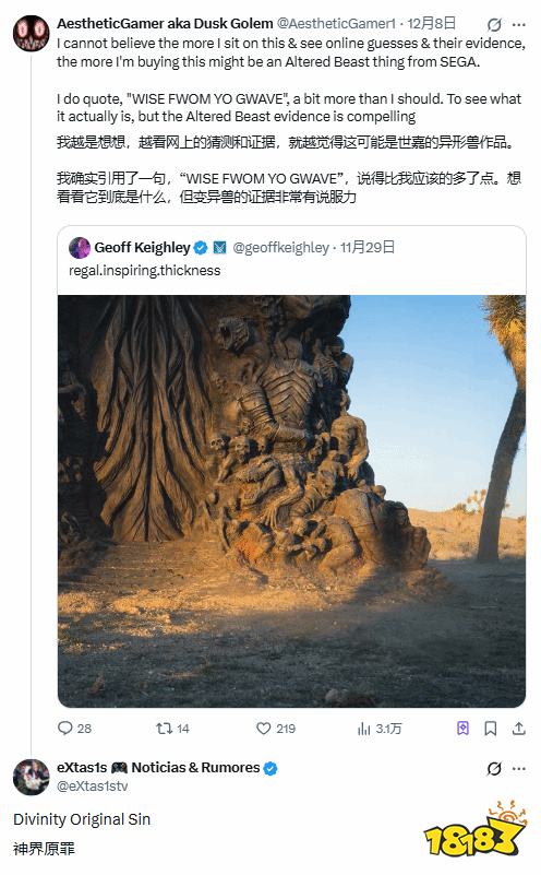 前几天TGA主办人Geoff Keighley在推特晒出一座神秘雕像,引发玩家组团“实地考察”。随后业内人士爆料称雕像与《神界:原罪》系列有关,让不少人猜测《神界原罪3》或在TGA 2025亮相。