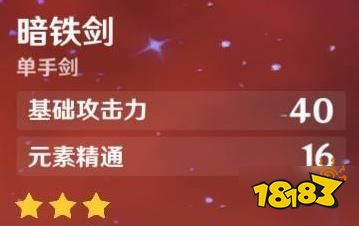 其中,属性上暗铁剑可以为角色带来额外的16点元素精通以及40点基础攻击力,前者为角色提供更好的元素收益,后者增加班尼特的输出强度,两两结合可以为角色在前期的探索提供必要的收益。