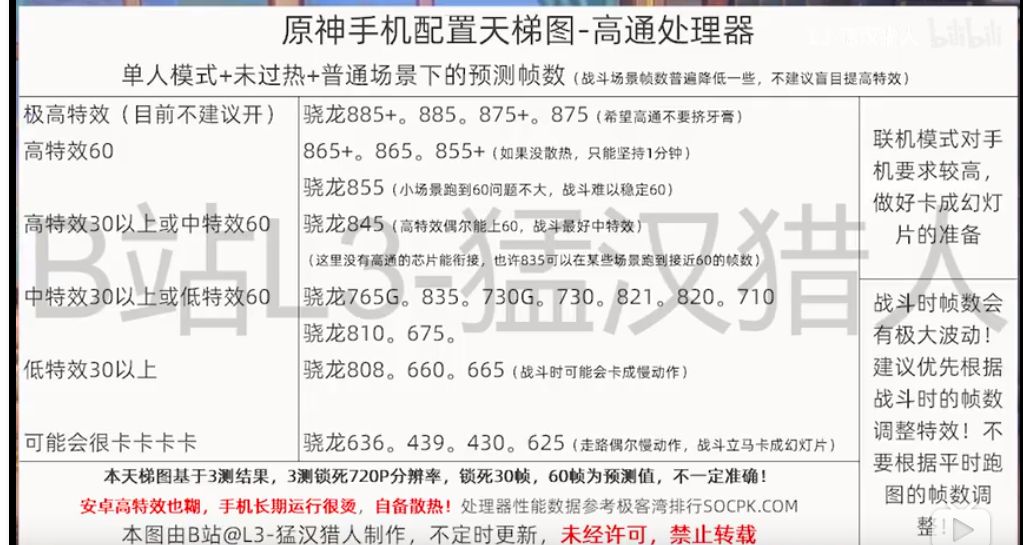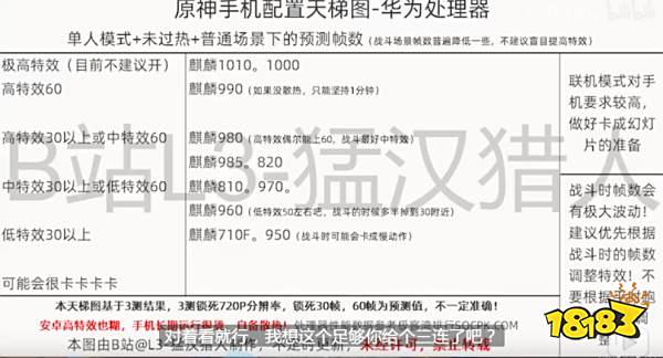 可以看出骁龙845和苹果手机的A11处理器,都位于基本无碍的行列,也就是说大家跑中高特效是可以流畅玩的,对画质要求不高的玩家可以不用担心运行问题。舍命一搏就比较惨了,画质和流畅度只能选其一,都比较影响游戏体验。