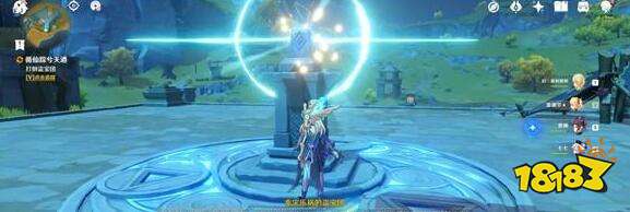 顺着指引,来到球状物位置,使用元素战技(只要是风属性都行)把目标吹走后,会让你继续吹别的位置(三个)
