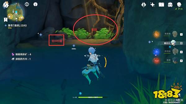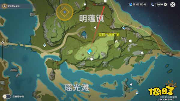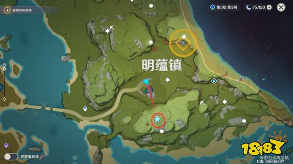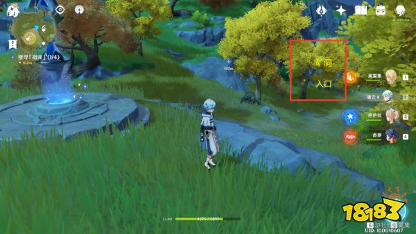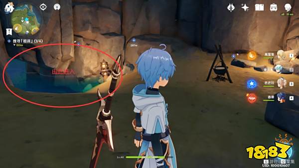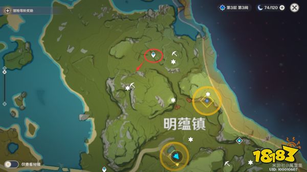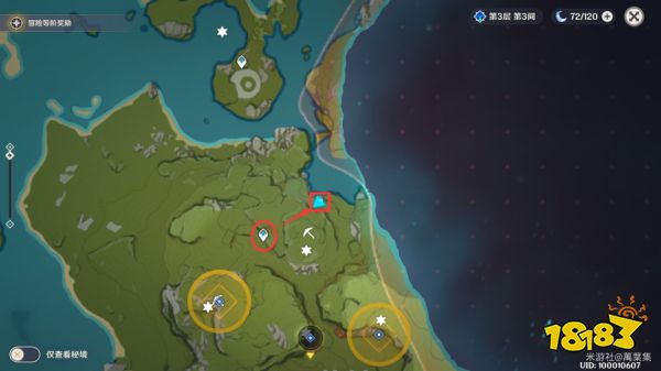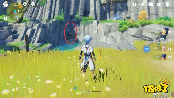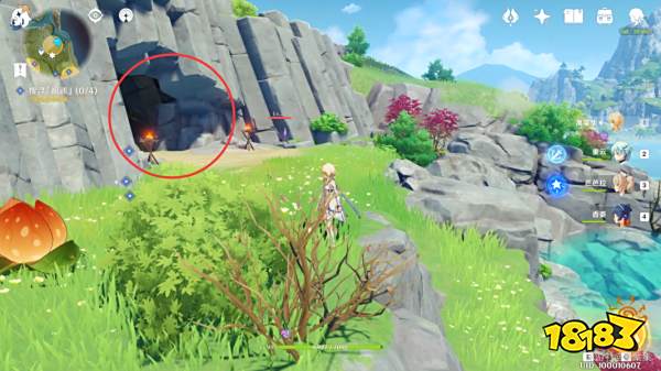 洞口是红圈标记处,本来是有一个火药桶一个丘丘人 还有假墙把假墙砸开就能进去了