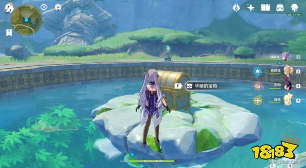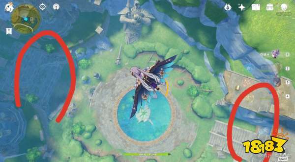 首先我们来到遁玉陵,发现建筑下面有一大湖,湖下面有一个风阵(里面有个华丽宝箱和一个岩神瞳)
