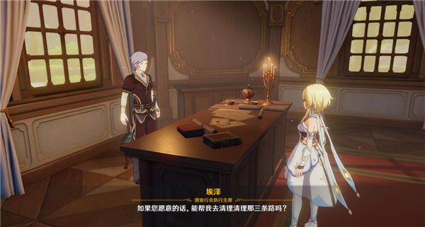 首先玩家们需要去完成酒庄大扫除,然后在一楼找到埃泽接任务。