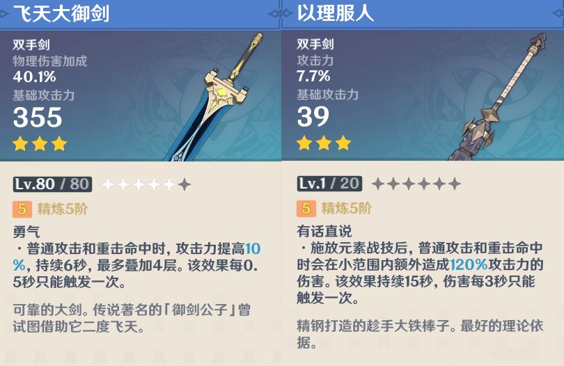 一件叫做飞天大御剑,飞天家族系列一直都是3星战神,大剑是目前唯一加物理伤害的大剑,80级提升了40%的物理伤害,虽然版面低,但是通过站场打BUFF,单刀伤害力压4星武器试做古华,是初期很值得培养甚至可以用到80级的绝对3星战神。