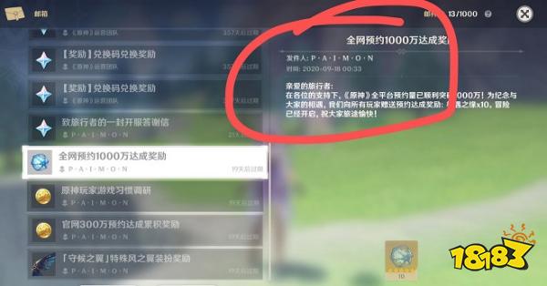 游戏在刚进入游戏会送一个邮件(翅膀奖励和预约);