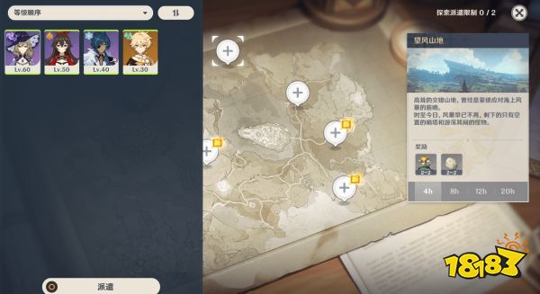 可查看可探索的区域和不同时长对应的派遣奖励,点击【选择角色】可查看当前角色一览;3,选择希望进行探索派遣的角色并选择希望探索的时间后,点击【派遣】,即展开了对应地区的探索;4,探索的时间结束后,回到凯瑟琳处即可获取探索派遣获的奖励。