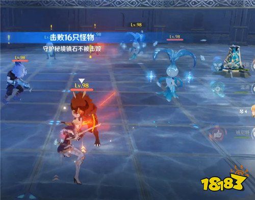 第三间下半 第一波冰风愚人众,可优先击杀冰,风学会躲就好,视频有具体。第二波刷雷、冰、岩三愚人众,推荐击杀顺序雷〉冰〉岩。