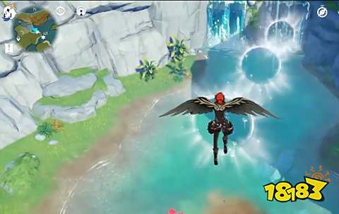 也是利用岩角色开启圆盘机关,开启风场,飞上天空。