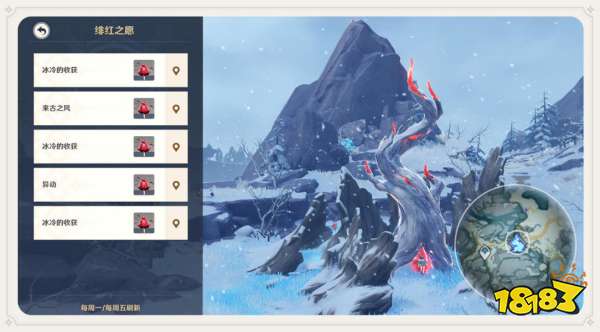 除以上奖励之外,「忍冬之树」供奉至8级后,将解锁「绯红之愿」。解锁后每周一和周五将刷新5个绯红之愿任务,完成对应挑战,将获得绯红玉髓。