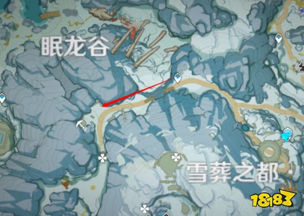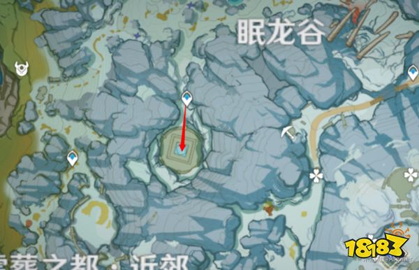 位于地图“眠龙谷”字样右下方锚点向西处,此处还有一处大型“独眼小宝”。