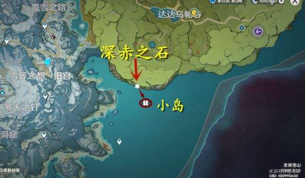在龙脊雪山右侧有一个小岛,上去之后会发现有一块坚冰,需要用深赤之石才可以打开。