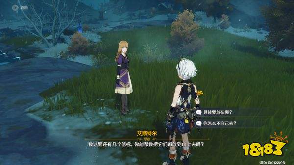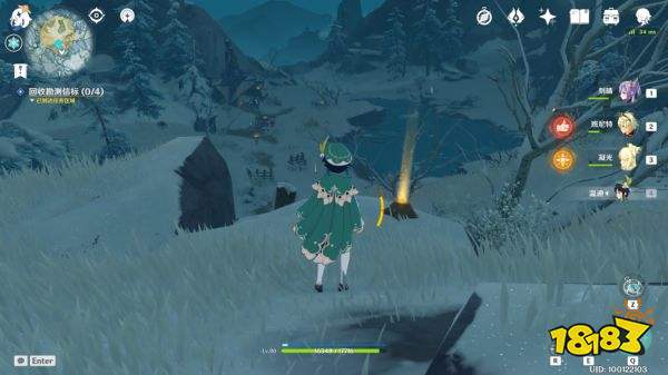 在雪山左方的传送点附近,与艾斯特尔对话会触发任务“雪山大勘查”,让旅行者帮忙寻找四个遗失的信标。