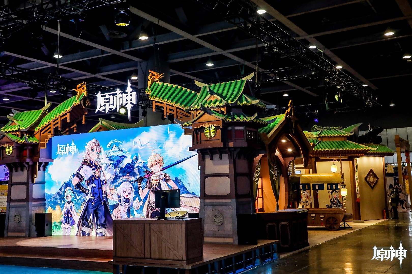 本次《原神》搭建了高度还原游戏内场景的展台,充分展现了游戏中「璃月」的东方风情。既有极具璃月风格的木造建筑,每日发布委托的冒险家协会,又有神秘幽深的奔狼领。此外,建筑的屋檐、窗棂、灯笼、雕刻等都充分还原游戏内设计,让人仿佛来到了丰富多彩的提瓦特大陆。