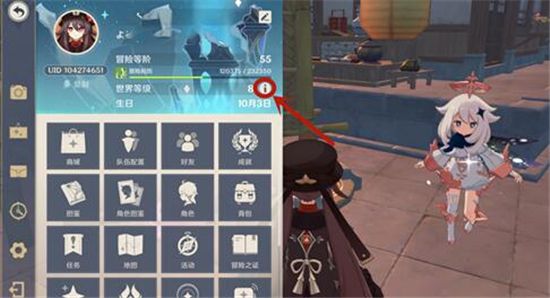 1、首先点击左上角来到派蒙界面中,在名片位置的世界等级旁边点击感叹号图标。