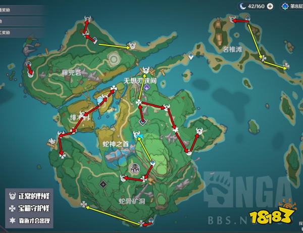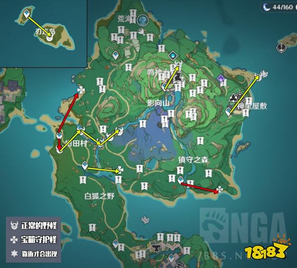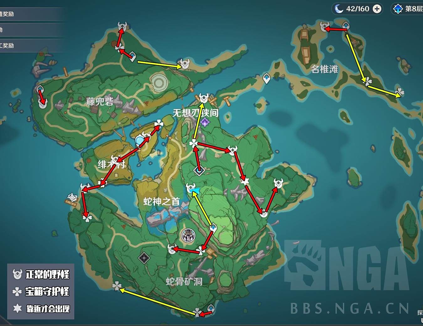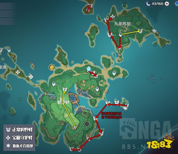 2.标注的怪分三种,其中第二种宝箱守护怪,猜测有些可能打完以后不再刷新,但现在无法判断。如果在当前点位找不到怪的话去下个点就可以了。
