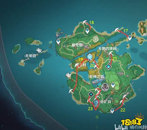 最后就是八酝岛这里了,路线都挺短的矿也不算少,就是蛇骨矿洞那里面比较难找