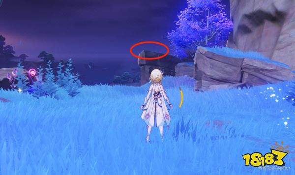 ②、传送至路线图中的传送锚点之后,根据下图圈出的标记,到达这棵植物所处的位置