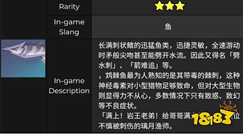原神游戏中鸠棘鱼,是新版本中增加的鱼类,珍贵的观赏鱼,可被饲养在灵沼云池中。下面小编给大家带来《原神》鸠棘鱼图鉴,小伙伴们一起来了解一下鸠棘鱼的相关内容吧!