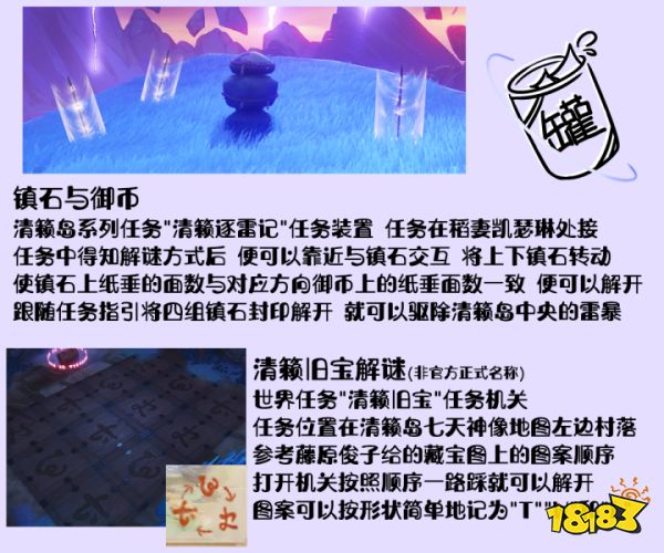 跟随任务指引将四组镇石封印解开,就可以驱除清籁岛中央的雷暴。