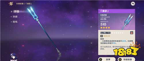 渔获这个四星武器万金油,基本上适用大多数的角色,如果你有多余的渔获,那就给托马用,也不错,提升元素爆发的伤害。