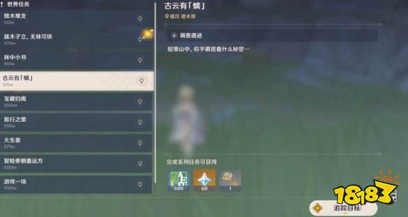 古云有螭任务是一个世界任务,玩家前往轻策庄南面遗迹位置下面的传送点旁边,即可发现一个世界任务。