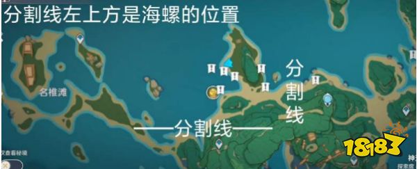 1、奇异的海螺分布的位置如下图所示,主要是在分割线以上的区域,海岛的北侧海岸线附近,大家可以对照下图来进行采集