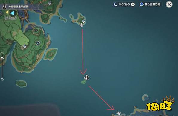 乘坐浪船到达中间小岛,小岛上有一个相位之门,利用元素视野可以看见门的朝向。旋转使其朝向对准未解锁的清籁岛神像方位,方向键保持前行,就会指引到清籁岛。
